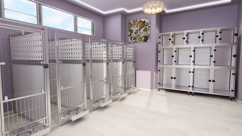 Çok Amaçlı Hayvan Yatma ve Karantina Kafesi, hayvanların çizilmesini tamamen önlerken olağanüstü uzun bir hizmet ömrü sağlamak için sağlam, güvenli temperli cam kullanır. Tamamen kaynaklı kafes gövdesi, kolay temizlik ve hijyen sağlamak için yuvarlatılmış köşelere sahiptir. Kafes üniteleri doğrudan mevcut pencerelerin önüne yerleştirilebilir, bu da onları özellikle köpek yavrusu satışı ve sahiplenme alanları için uygun hale getirir.